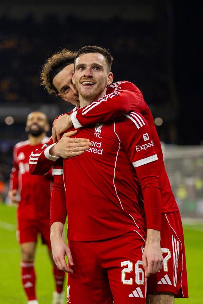易边再战,利物浦用两分钟的闪电攻势,直接锁定比赛走向,功勋老将罗伯逊起到关键作用。这位曾稳居世界第一左后卫宝座、本赛季却沦为替补常客的苏格兰人,用一场传射建功的完美表演,宣告了自己的回归。第51分钟,萨拉赫右路盘带后回做,琼斯顺势分球,罗伯逊在左路弧顶从容调整,一脚势大力沉的远射直窜球门死角,打破场上僵局的同时,也宣泄了本赛季替补待命的不甘。仅仅两分钟后,罗伯逊再度发力,左路下底送出精准低平传中,萨拉赫后点跟进包抄破门,即便边裁初判越位,VAR的介入也最终确认了这粒进球的有效性,利物浦2-0领先。